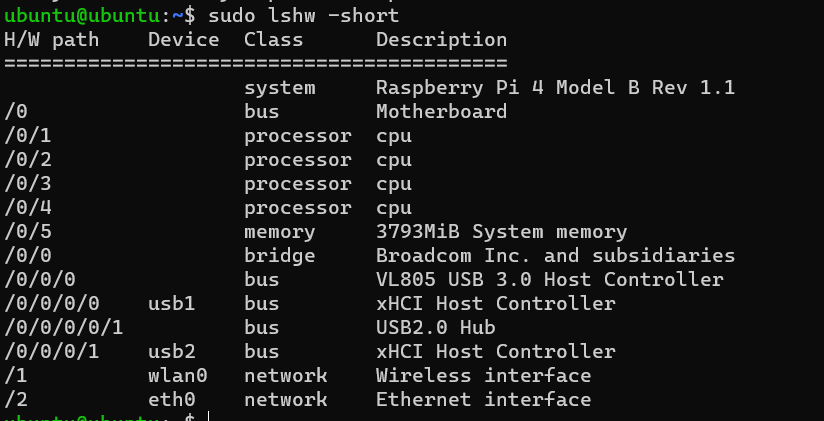 sudo lshw -short